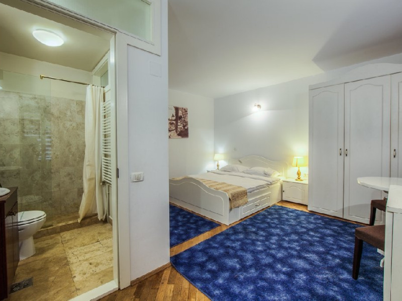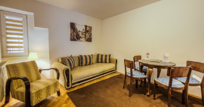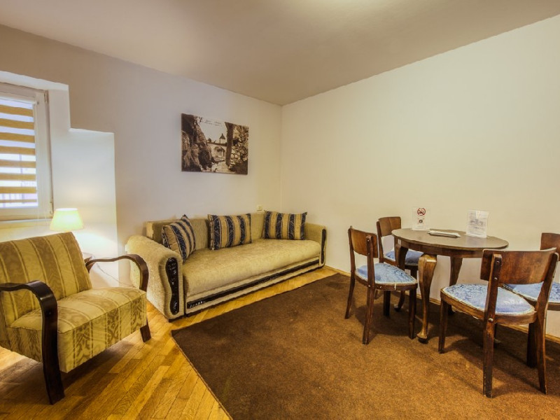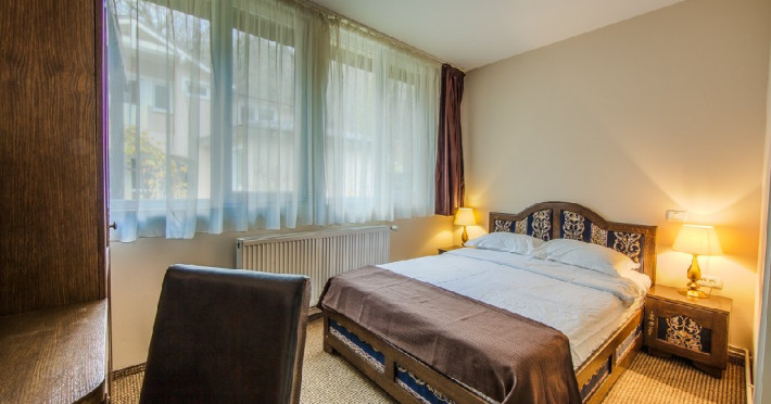 Apartamentul standard este format dintr-un dormitor cu pat matrimonial si un living cu canapea extensibila. De asemenea beneficiaza in plus de : - masa si scaune - cuptor cu microunde - localizare la parter cu intrare separata fata de cladirea principala - pot gazdui 3 persoane standard si a 4-a cu costuri suplimentare