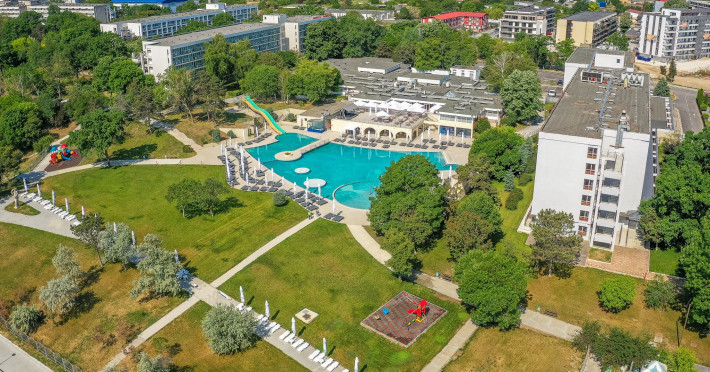 Piscina pentru adulti si copii, tobogane acvatice; Umbrele si sezlonguri la piscina in limita locurilor disponibile (alocarea sezlongurilor se face in ordinea sosirii la piscina); Parcare in limita locurilor disponibile; Animatori; Muzica live; Umbrele si sezlonguri la plaja in limita locurilor disponibile (alocarea sezlongurilor se face in ordinea sosirii la plaja); Internet WIFI; Pat bebe tip tarc la cerere, in limita disponibilitatii; Beach Bar All inclusive.