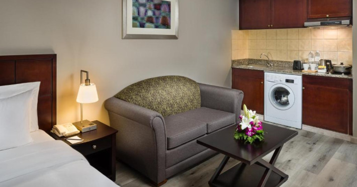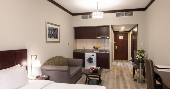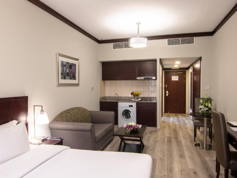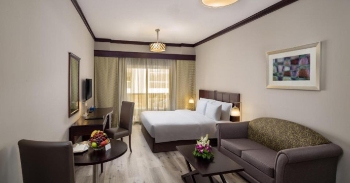 Hotelul elegant Savoy Crest oferă cazare modernă, la 15 minute pe jos de BurJuman Mall. Există facilități de lux, precum o zonă in aer liber cu șezlonguri și un centru de fitness.