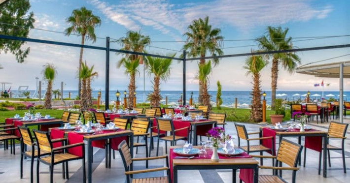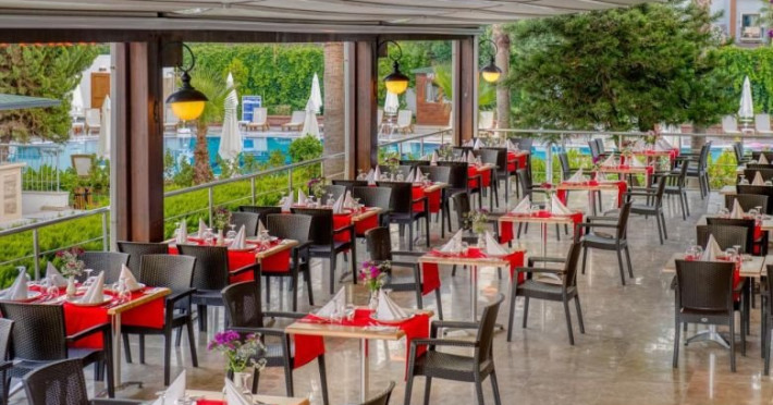 RESTAURANT All Inclusive - bufet deschis pentru mic dejun, mic dejun tarziu, pranz, gustari dupa-amiaza, prajituri, ceai, cafea, cina. Toate bauturile alcoolice si non-alcoolice locale consummate in intervalul orar 10.00-24.00, restaurantele A la Carte cu rezervare in prealabil. Nu sunt incluse in concept toate bauturile importate, toate bauturile imbuteliate, room service, bauturile in Disco, toate bauturile dupa orele 23.00, sucurile naturale de fructe, mini-barul din camera, narghileaua .