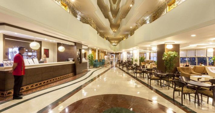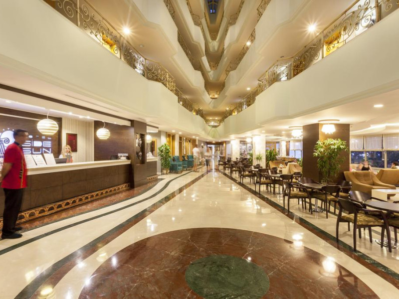 Situată în Side (Antalya), această proprietate de 4 stele dispune de o zonă de plajă privată, piscină interioară și piscină exterioară cu șezlonguri și umbrele de soare. Facilitățile de la Side Sun includ și sală de fitness. Pentru petrecerea timpului liber oaspeții au la dispoziție activități de agrement pe timpul zilei și programe de divertisment seara. Proprietatea are, de asemenea, servicii de recepție cu program non - stop și închirieri auto. Se oferă acces gratuit la internet Wi-fi în spațiile publice. Parcarea este disponibilă la proprietate gratuit.
