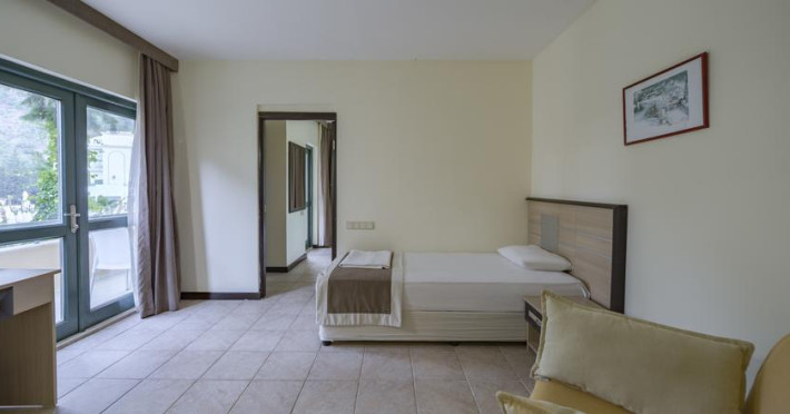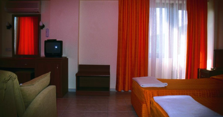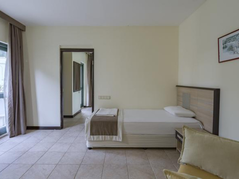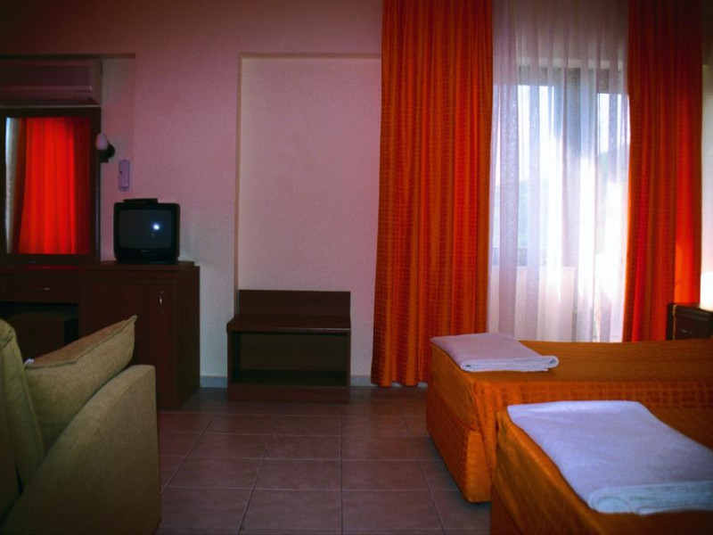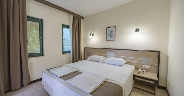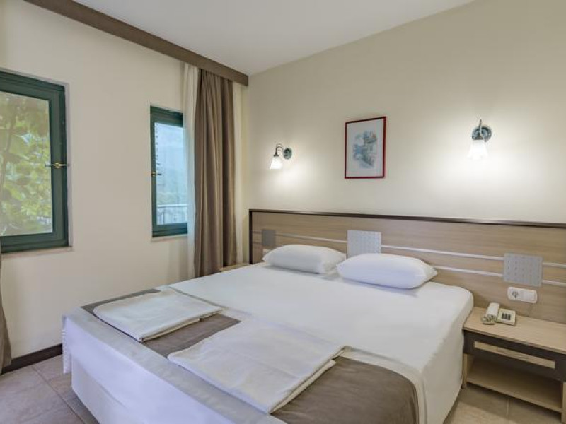 În camere există baie cu cadă sau duș prevăzută cu foehn. Camerele confortabile de la Sumela Garden Hotel sunt dotate cu pardoseală de gresie/ marmură, aer condiționat, Tv și seif. Unele camere au balcon cu vedere la mare sau la piscină. Curățenia in cameră se face zilnic. De asemenea, este disponibilă o zonă de luat masa. Proprietatea oferă camere pentru familie cu o suprafață mai mare și un număr mai mare de paturi față de cele standard. Se pot rezerva de asemenea camere pentru nefumători.