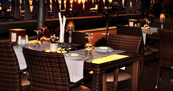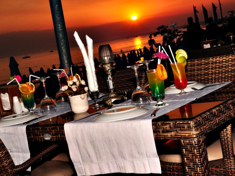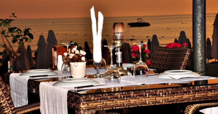 La Sun Beach Hotel oaspeții au la dispoziție un restaurant care servește mâncare în stil bufet. Masa poate fi servită atât în interior, cît si în aer liber, pe terasă, în funcție de vreme. Oaspeţii pot avea diverse băuturi răcoritoare sau alcoolice la bar. În cadrul proprietății există și un snack bar care servește băuturi și gustări.