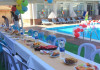 Copiii se pot distra la piscina special amenajată pentru ei.