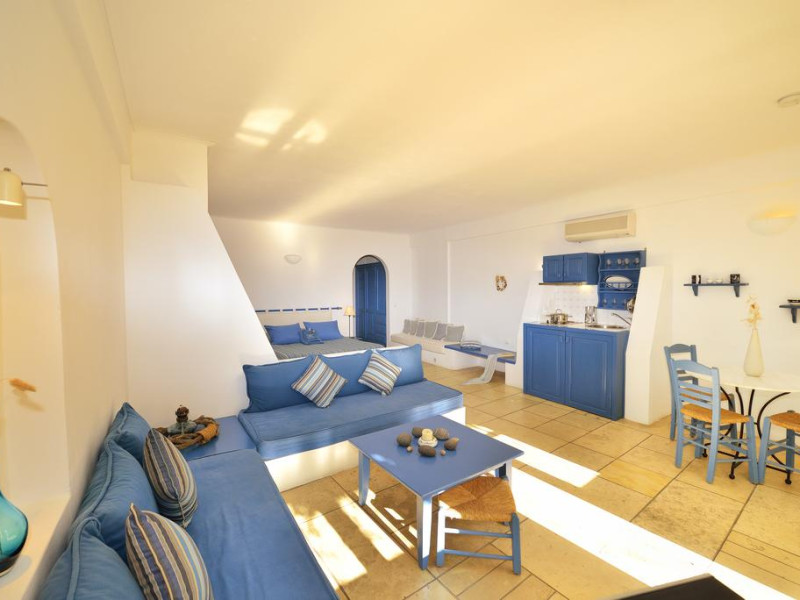 Cel mai apropiat aeroport este Aeroportul Internaţional din Santorini, situat la o distanță de 3,4 km. La cerere proprietatea organizează transfer la/de la aeroport contra cost.