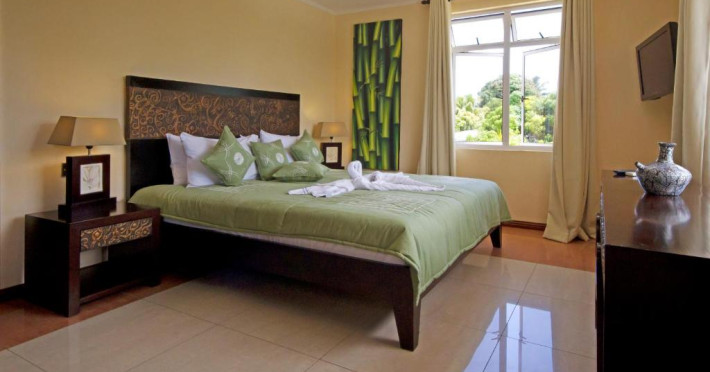 Unitatea de cazare The Palm Seychelles este situată la poalele Parcului Național Morne Seychellois și este inconjurată de grădini luxuriante, unde puteți găsi o piscină in aer liber și un izvor. Unele apartamente oferă vedere largă la Oceanul Indian.
