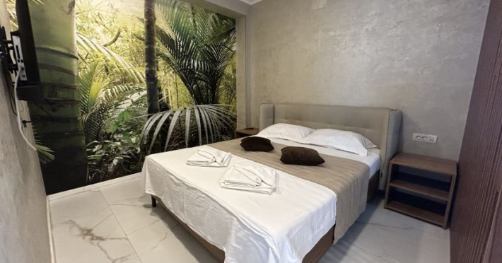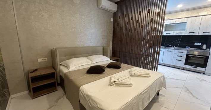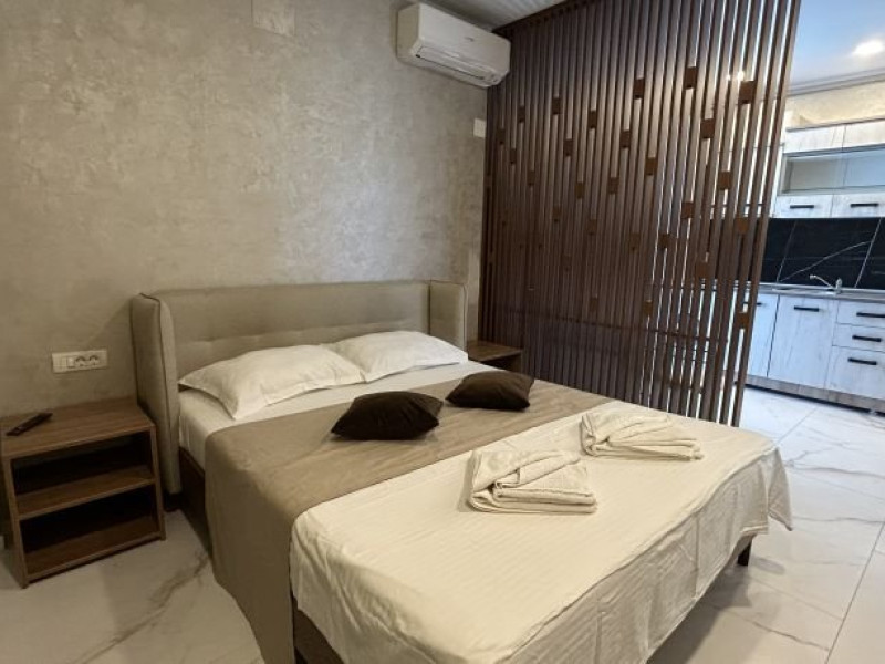 1 Studio deluxe dotat cu pat dublu matrimonial. Capacitate maxima: 2 adulti si 1 copil 0-6 ani.