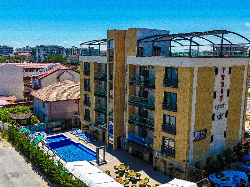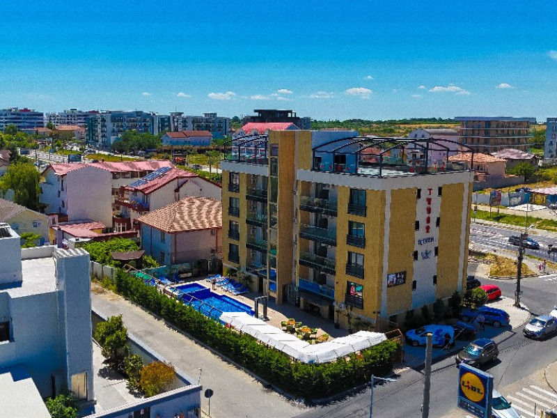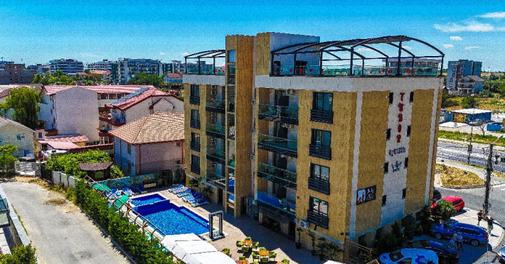 FACILITATI UNITATE Tudor By Dedal Aparthotel, situat in Mamaia Nord, in zona Alezzi, este dotat cu spatiu de servire a meselor, bar, piscina in aer liber ce functioneaza in perioada sezonului estival si terasa exterioara . Hotelul ofera gratuit clientilor sai parcare privata si Internet Wireless.