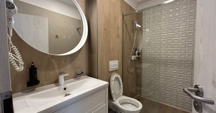 DESCRIERE CAMERE Dotari camere: Wi-fi free, TV, frigider, feon, uscator rufe, balcon, masina de spalat rufe, aer conditionat. Toate camerele au balcoane mobilate. Locatia dispune de 24 de spatii de cazare: 11 Apartamente ce constau intr-un living cu canapea extensibila si un dormitor cu pat matrimonial. Capacitate maxima: 4 adulti