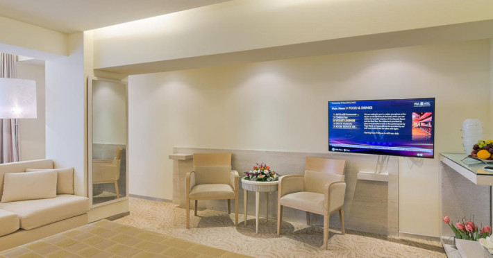 Camerele luminoase de la Vega sunt dotate cu aer condiționat și Tv cu canale prin satelit. În camere există baie cu cadă sau duș prevăzută cu foehn. Curățenia in cameră se face zilnic.