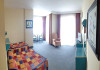 Sunt disponibile 105 camere. Camerele de la Vella Beach Hotel sunt dotate cu aer condiționat, Tv cu canale prin satelit și seif. Unele camere au balcon cu vedere la mare, unde oaspeții pot admira apusul sau răsăritul soarelui. În camere există baie cu cadă sau duș prevăzută cu foehn. Oaspeții au acces la serviciul Wi-fi în camere contra cost. Curățenia in cameră se face zilnic.