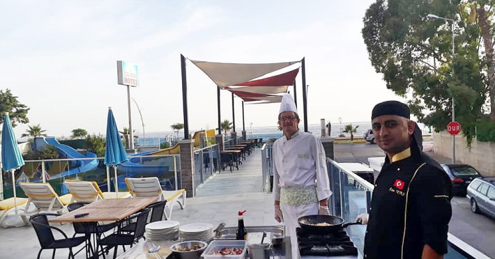 La Vella Beach Hotel oaspeții au la dispoziție un restaurant care servește mâncare în stil bufet. Preparate din bucătăria internațională așteaptă să fie degustate în fiecare zi la micul dejun, prânz și cină. 2 baruri, dintre care unul la piscină, sunt disponibile cu o ofertă variată de băuturi răcoritoare și alcoolice.