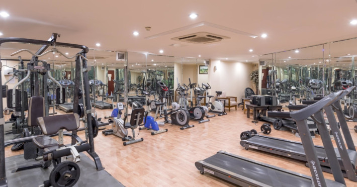 O sală de fitness cu echipamente necesare pentru o gamă variată de exerciții fizice este la dispoziția celor interesați.