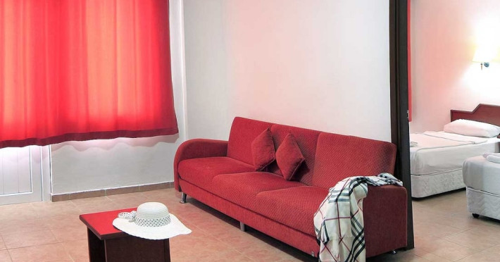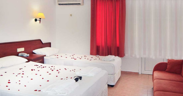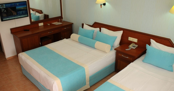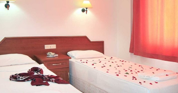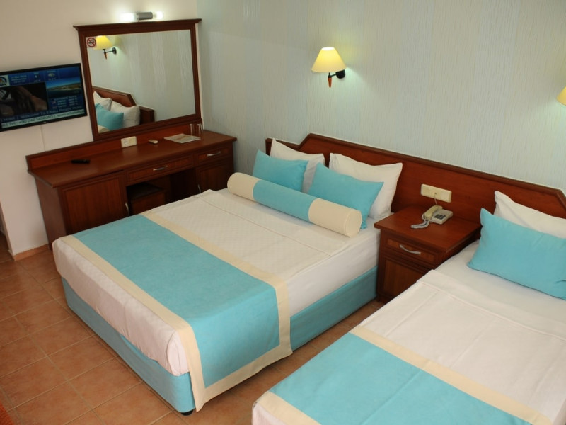 În camere există baie cu cadă sau duș ce are în dotare foehn și articole de toaletă gratuite. Camerele luminoase de la Xeno Eftalia Resort sunt dotate cu aer condiționat, Tv și seif. Unele camere au vedere la mare. Oaspeții au acces gratuit la serviciul Wi-fi în camere. Curățenia in cameră se face zilnic.