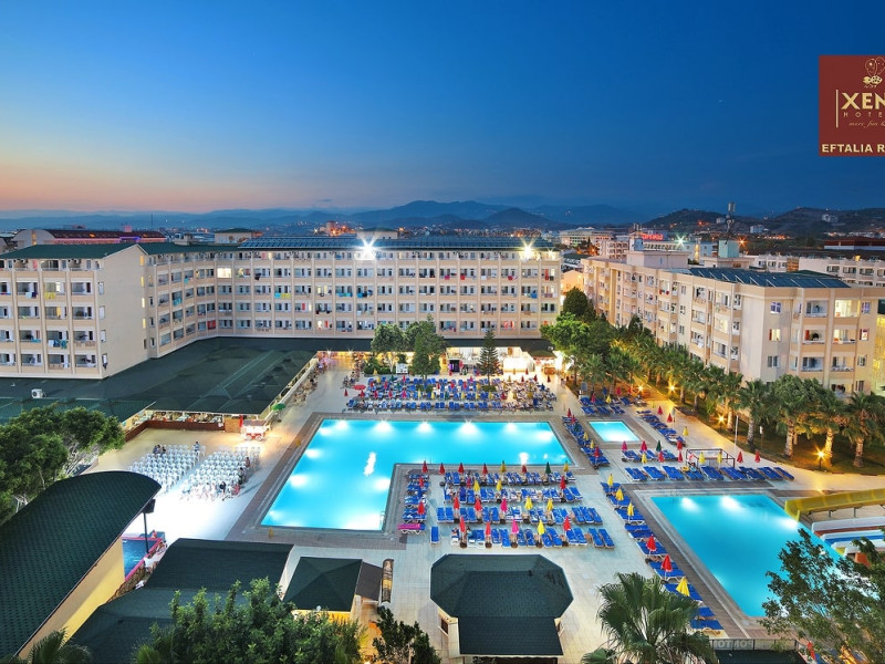 Situată în Alanya (Antalya), această proprietate de 4 stele dispune de o zonă de plajă privată cu șezlonguri și umbrele de soare, piscină interioară și 3 piscine exterioare. Facilitățile de la Xeno Eftalia Resort includ și sală de fitness. Proprietatea are, de asemenea, servicii de recepție cu program non - stop, concierge și închirieri auto. Se oferă acces gratuit la internet Wi-fi în spațiile publice. Parcarea este disponibilă la proprietate gratuit.
