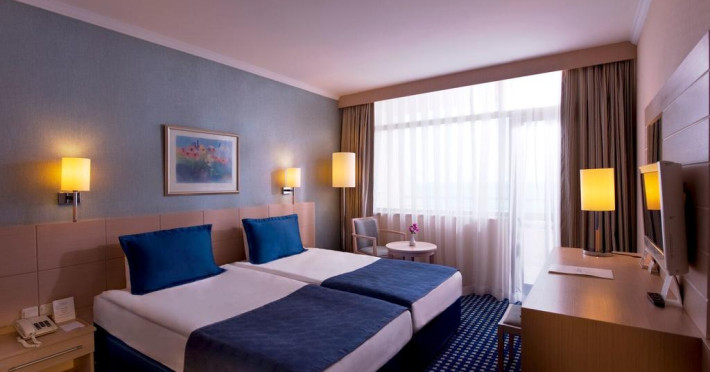 Unele camere au balcon cu vedere la mare sau la grădină. Fiecare cameră dispune de minibar și cană-fierbător. Oaspeții pot solicita serviciul de room service pentru a servi masa sau diverse băuturi. În camere există baie cu cadă sau duș ce are în dotare foehn și articole de toaletă gratuite. Oaspeții au acces gratuit la serviciul Wi-fi în camere. Curățenia in cameră se face zilnic. Anumite camere au cadă cu hidromasaj care asigură un plus de confort și răsfăț. Proprietatea oferă camere pentru familie cu o suprafață mai mare și un număr mai mare de paturi față de cele standard. Se pot rezerva de asemenea camere pentru nefumători.
