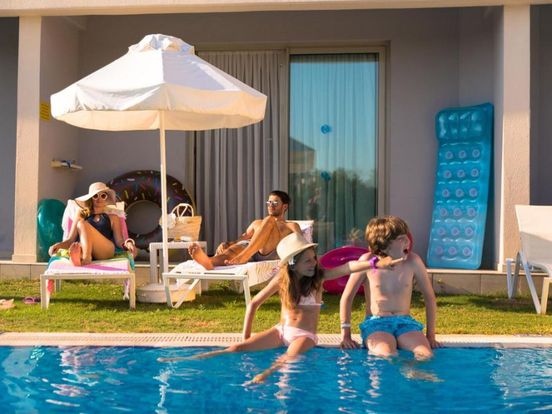 Proprietatea este o alegere potrivită pentru familiile cu copii. Cei mici se pot distra în aer liber la piscina pentru copii, prevăzută cu tobogan cu apă sau în locul de joacă special amenajat. Pentru orele toride cei mici pot opta pentru clubul amenajat la interior, unde există jocuri și programe de animație.