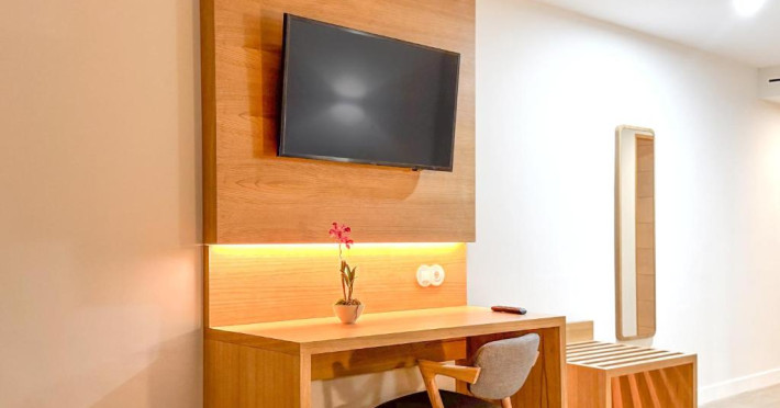 Camerele de la Sol e Mar au TV prin satelit și balcon privat cu vedere la mare. Toate camerele au frigider și baie privată cu uscător de păr.