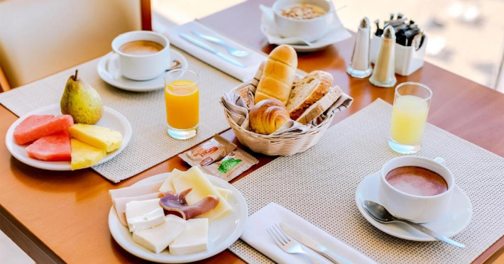 Restaurantul Sunrise oferă bufete generoase și are vedere la mare, iar restaurantul Sunset servește mancăruri à la carte din bucătăria regională și internațională. Complexul oferă un cocktail bar, o gelaterie și un program de divertisment live in timpul serii.