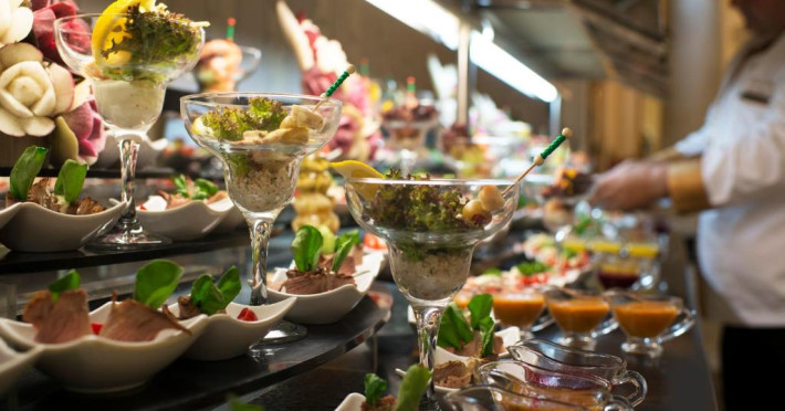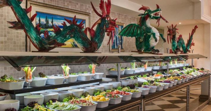 Complexul Delphin Diva are mai multe restaurante, inclusiv de specialităti italiene, japoneze, turcesti si mexicane. Oferă mai multe baruri, inclusiv un bar la piscină si un bar pe plajă.