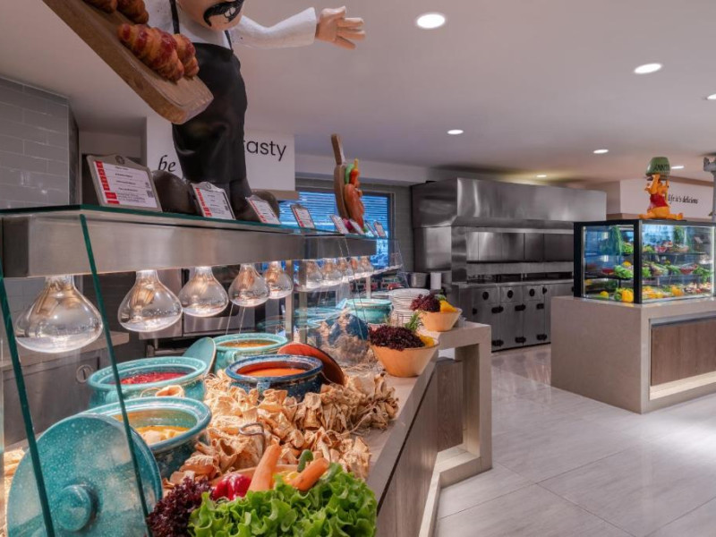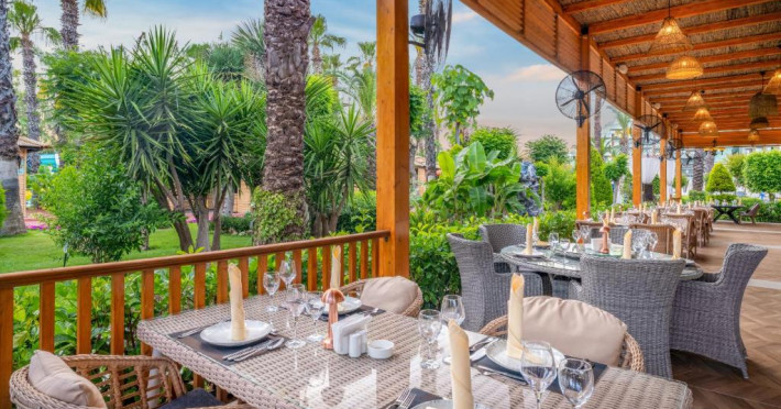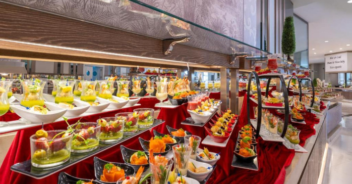 Restaurantul Delphino serveste preparate din bucătăria internatională, inclusiv otomană, italiană, japoneză si fructe de mare proaspete. Cocktailuri sunt disponibile la Lobby Bar non-stop. Divertismentul de seară include muzică live, o discotecă si spectacole de comedie.