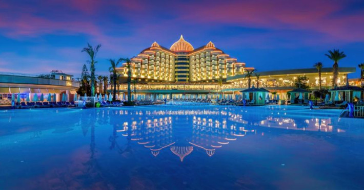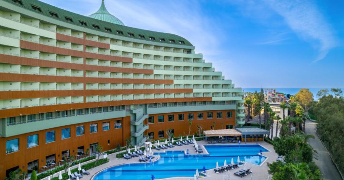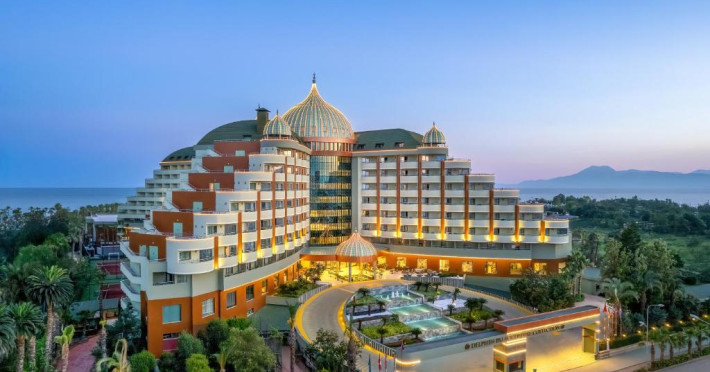 Hotelul de 5 stele de la malul mării, Delphin Palace, este situat la Marea Mediterană, in Antalya. Acesta oferă camere cu Wi-Fi gratuit, o piscină mare in stil lagună, activităti in timpul zilei si divertisment de seară.