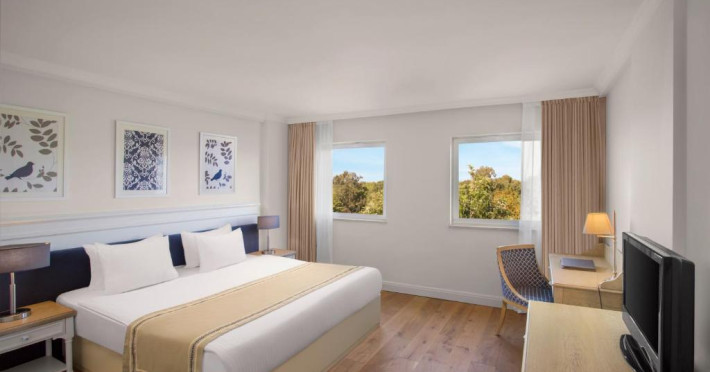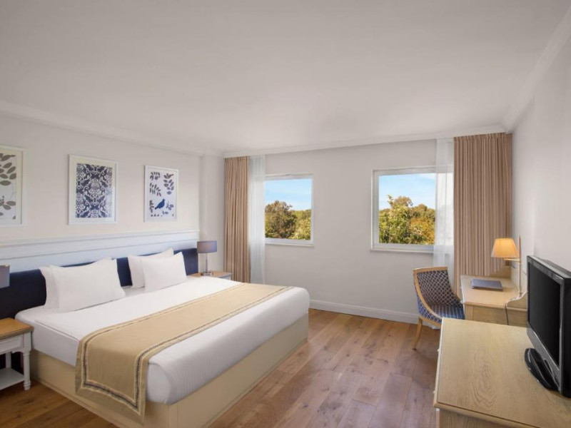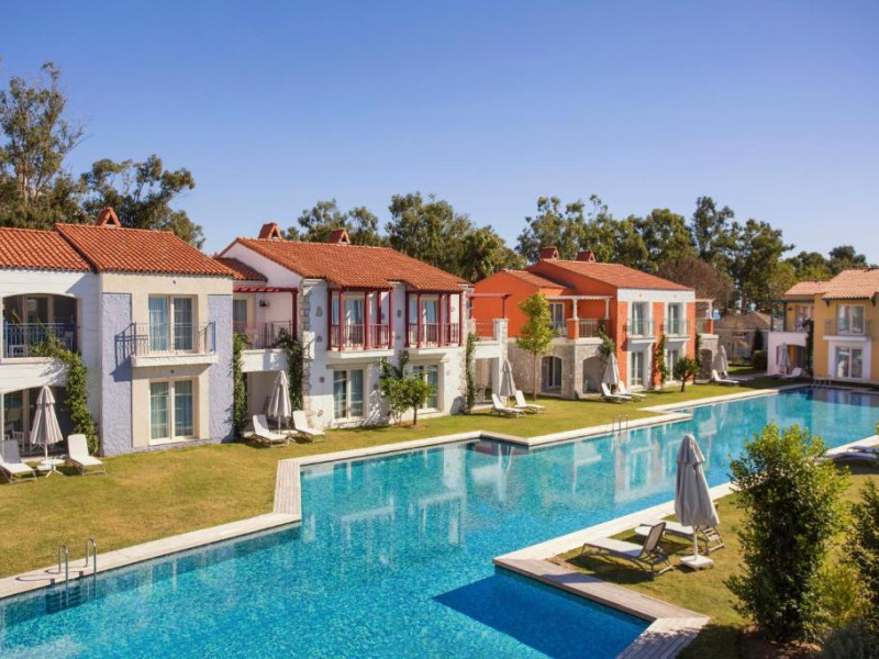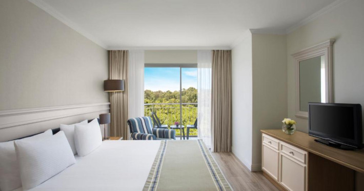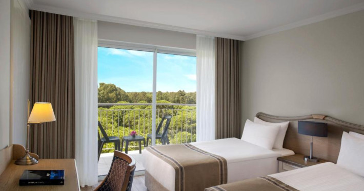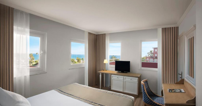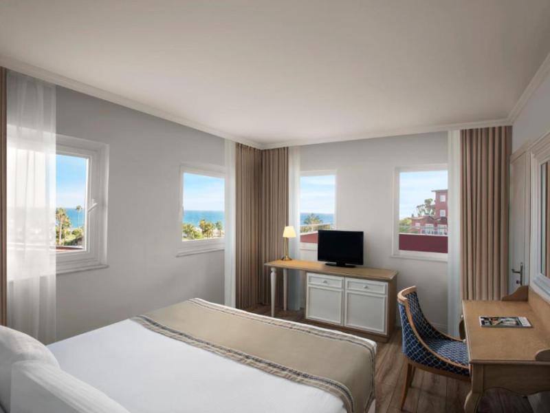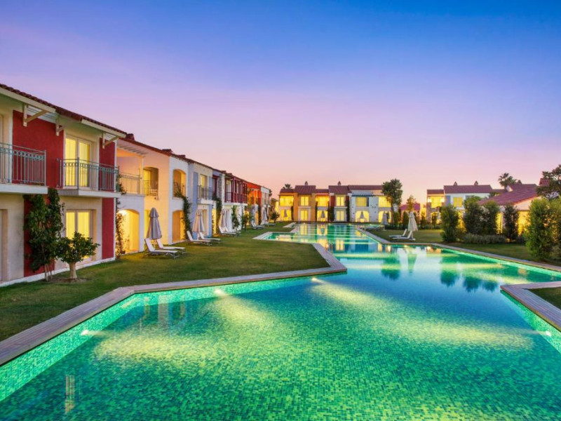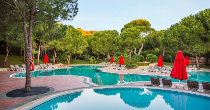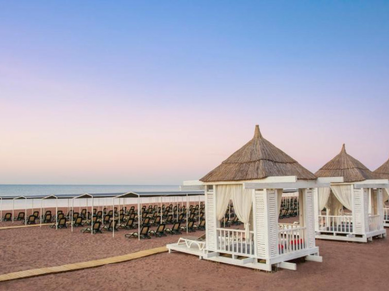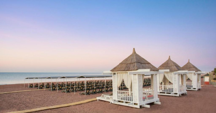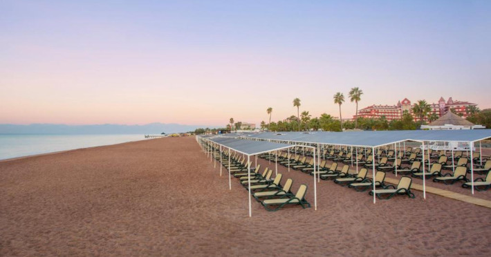 The hotel IC Hotels Santai Family Resort is located in the vicinity of a private sandy beach. At the beach, there are sun loungers and sun umbrellas free of charge. The nearest town is Antalya. For mobility there is a car rental company. The hotel and airport are linked by a shuttle (for a fee).