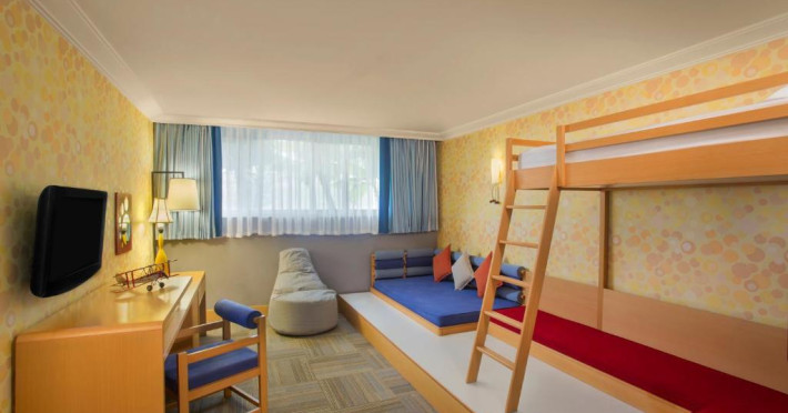 Recently renovated in 2015, the beach hotel has 508 rooms in total. It offers its guests a 24h reception, a lobby with bar, a lift, air conditioning, coiffeur, a mini market, various other shops and discotheque. For the meals, there is a snack bar. In a total 7 bars, you can relax in the evening in good company. WiFi is available for free. Room cleaning is free of charge. Room service, laundry / ironing service and medical service are available for a fee.