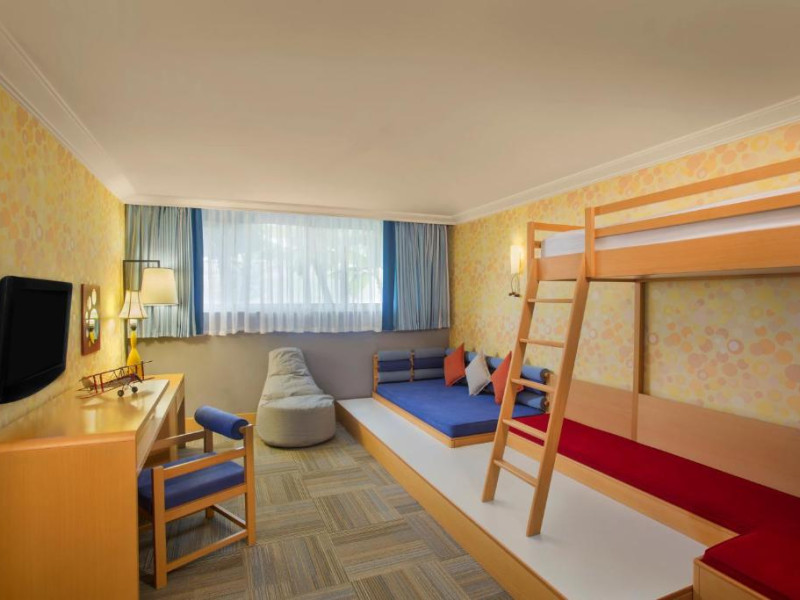 Sports and entertainment: Tennis (for free), billiards (where applicable, for a fee), darts (where applicable, for a fee), table tennis (where applicable, for a fee), mini golf, fitness, beach volleyball and aerobics. At the beach different watersport types such as jet skiing are on offer (partly from local providers). Sauna free of charge. Spa area, whirlpool and massages available for a fee. Steam bath and hamam available (where applicable for a fee). Entertainment for adults: evening shows and live music. In the outside area of the hotel there is a play area for children. Child supervision: mini club for children (from 4 - 11 years) and babysitting (for a fee). Gaming Room.