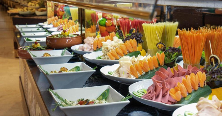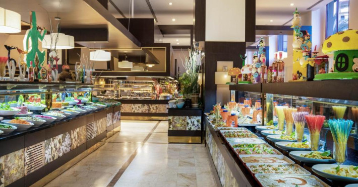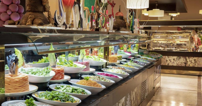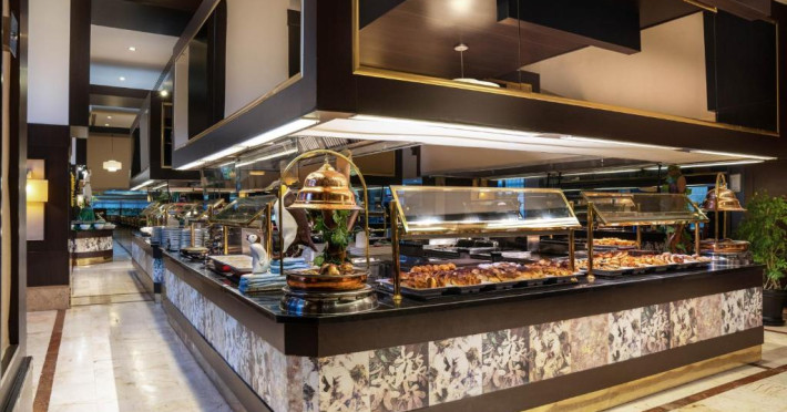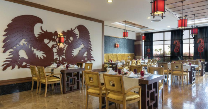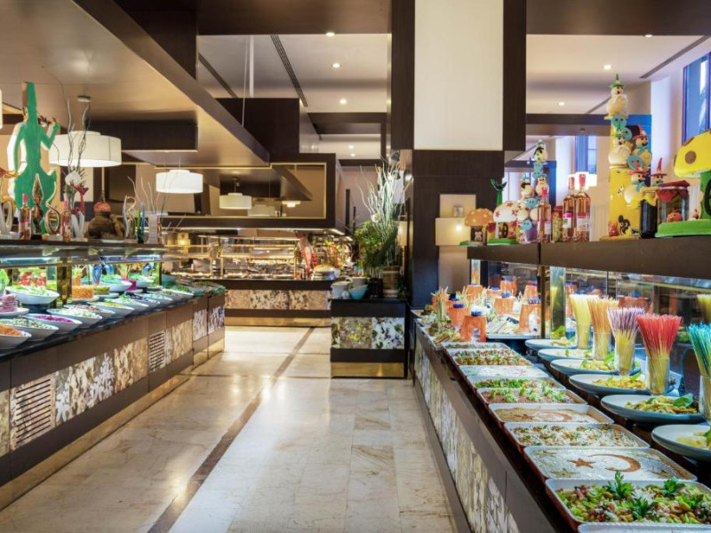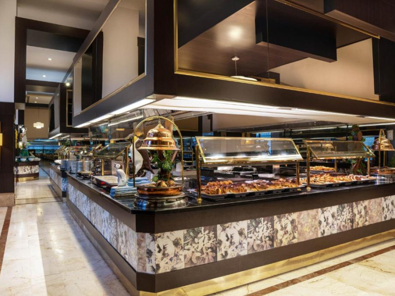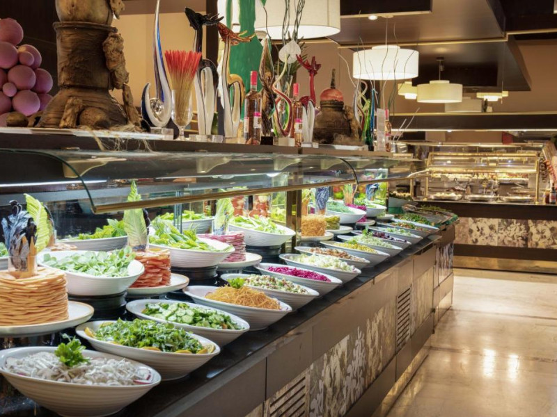 Restaurantul principal serveste mic dejun, pranz si cină in stil bufet. Restaurantele à la carte oferă preparate la grătar si mancăruri din bucătăria italienească si din Orientul Indepărtat. De asemenea, hotelul pune la dispozitie 5 baruri, care servesc o varietate de băuturi alcoolice si fără alcool.