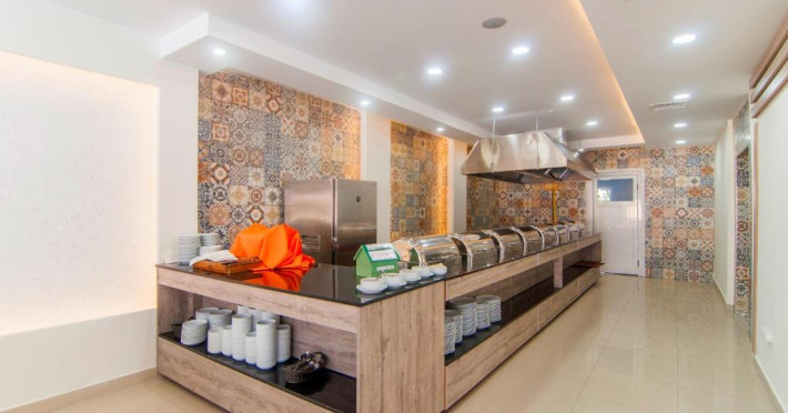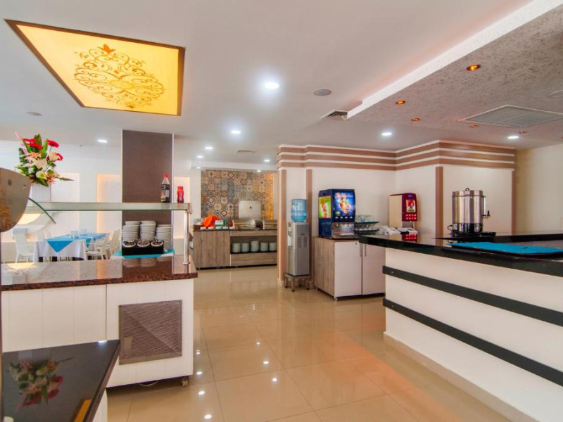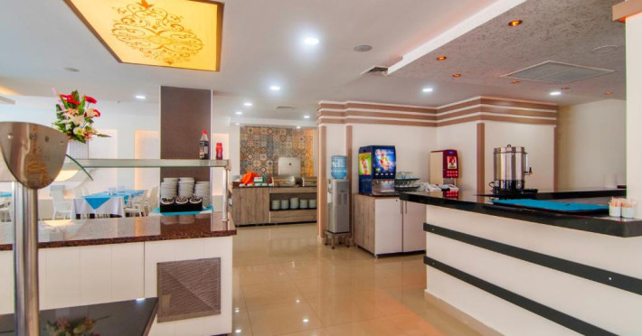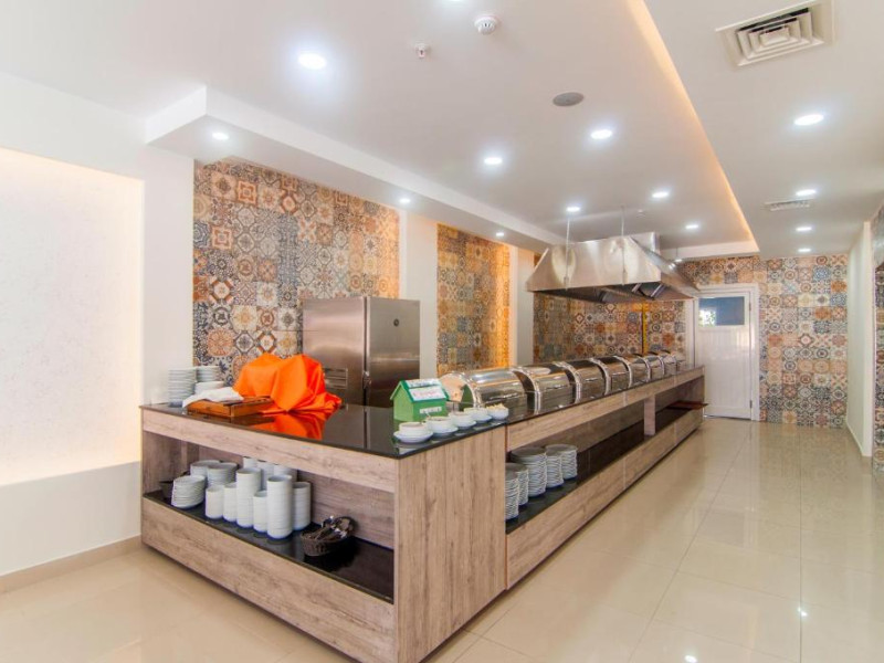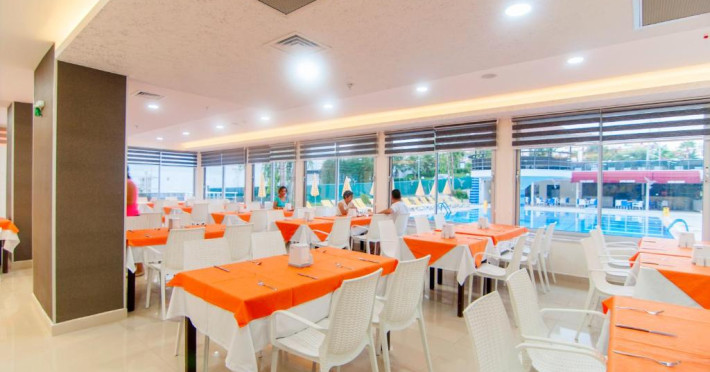 Restaurantul hotelului oferă o gamă largă de mancăruri in stil bufet. Există un snack bar langă piscină. La bar pot fi comandate băuturi răcoritoare.