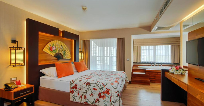 Camerele cu aer condiționat de la Limak Lara Deluxe Hotel & Resort Antalya au mobilier modern cu influențe turcești. Acestea includ o zonă de living spațioasă cu televizor cu ecran plat. Unele camere au o cadă cu hidromasaj și o terasă cu vedere la mare. Oaspeții vor găsi un coș cu fructe gratuit in cameră la sosire.*