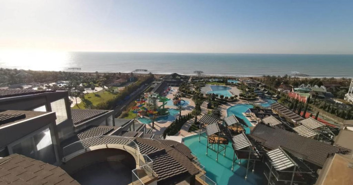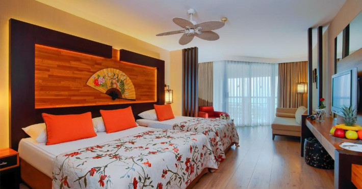 Acest hotel luxos de 5 stele este situat in stațiunea de coastă Lara. Dispune de 4 restaurante à la carte și un centru spa extins. Toți oaspeții beneficiază de beneficii speciale, cum ar fi un coș cu fructe gratuit și o sticlă de vin la sosire, oferte speciale la SPA și restaurante.