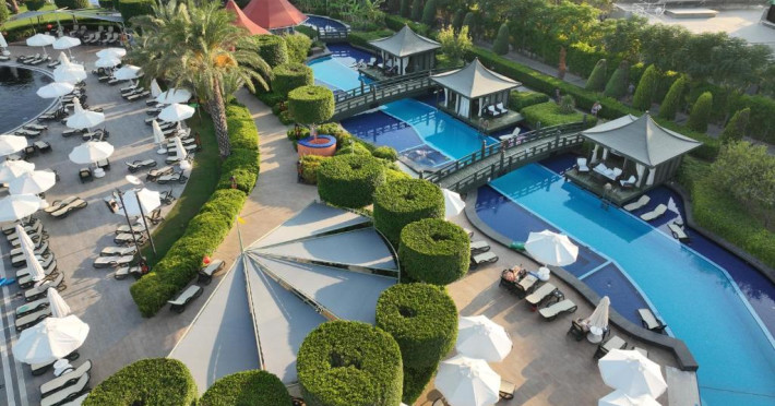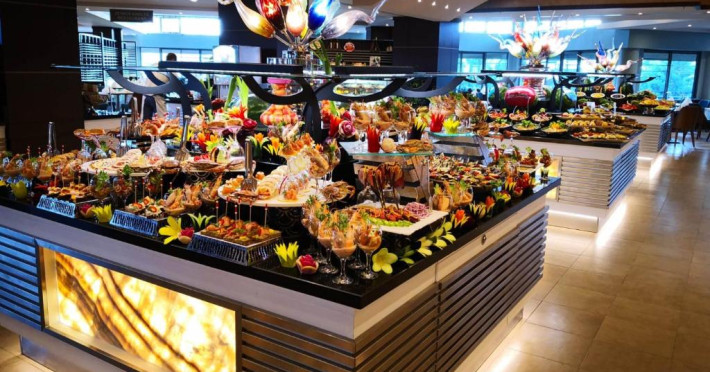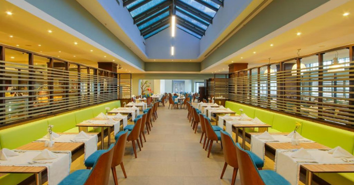 Oaspeții se pot bucura de diverse preparate internaționale la restaurantele din incintă, inclusiv indiană, thailandeză, japoneză, italiană, mexicană și turcească. Mesele pot fi savurate atat in ​​interior, cat și in aer liber.