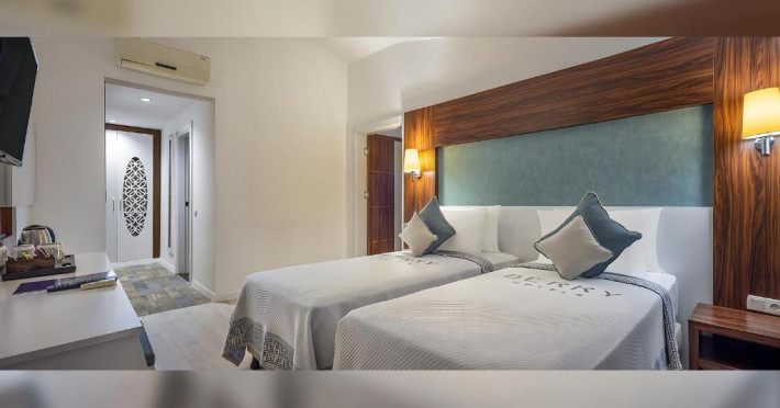 In camere există un aparat de aer condiționat. Clienții vor găsi un cadou de bun venit. Camerele au un pat „King size” sau o canapea. Pentru un pat suplimentar nu se percep taxe suplimentare. De asemenea, sunt disponibile un seif, un minibar și un birou. Echiparea de bază cuprinde de asemenea și un aparat pentru cafea/ceai. Clienții au parte de mai mult confort și datorită setului de călcat. In plus, există un telefon cu apelare directă, canale prin satelit, un radio și WiFi (gratuit). In cameră se găsesc și papuci de casă. In băi există o cădiță pentru bebeluși. In băi sunt disponibile un uscător de păr, halate de baie și telefonul pentru folosința zilnică. In plus, clienții se bucură in băi de articole de cosmetică și muzică de fundal. Mai stau la dispoziție și 2 camere adaptate pentru scaun rulant, cu baie fără bariere. Clubul oferă 18 camere de familie și 266 de camere de nefumători.