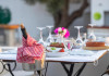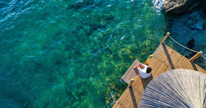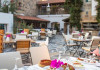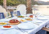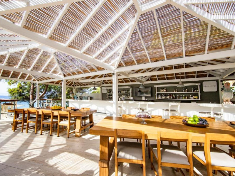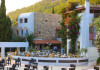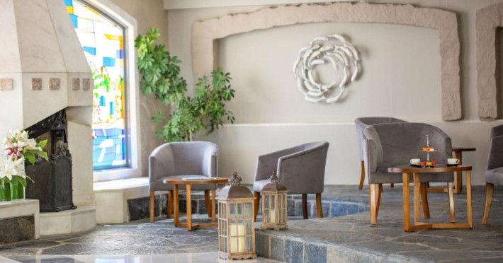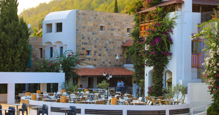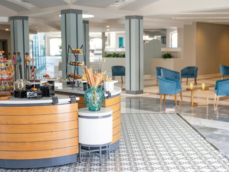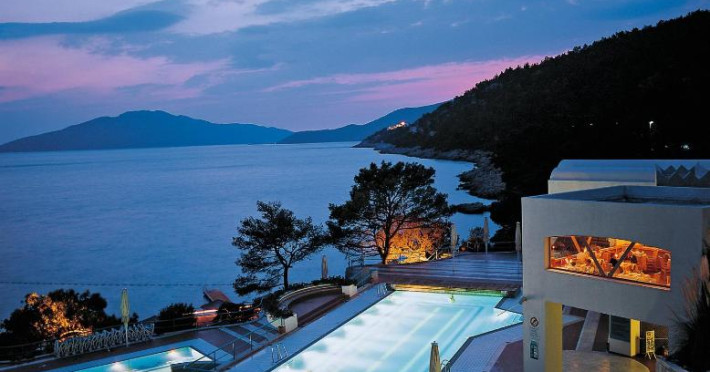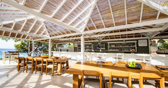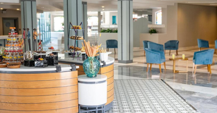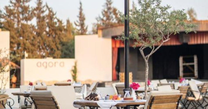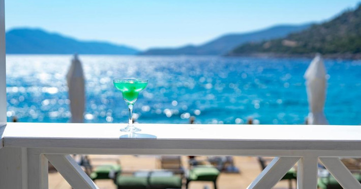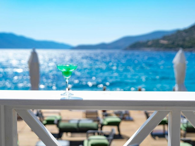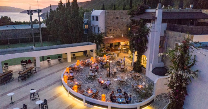 Oaspetii pot lua masa la restaurantul romantic al hotelului, cu vedere la Marea Egee si la munti. Barul oferă o varietate de băuturi, iar complexul are si un club de noapte.