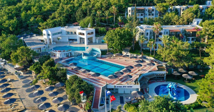 Hapimag Sea Garden este un complex luxos de 5 stele, situat in mijlocul unei păduri de pini, pe coasta de sud a Peninsulei Bodrum. Acesta are o plajă privată, o piscină in aer liber si camere cu balcon.