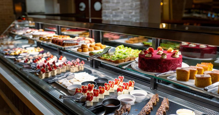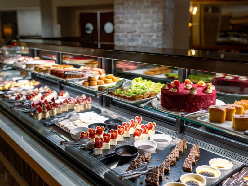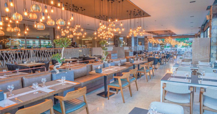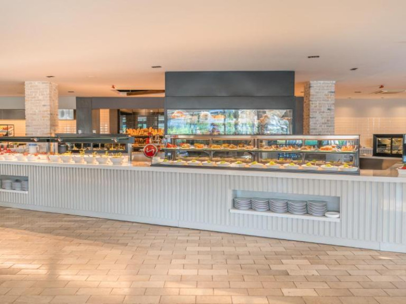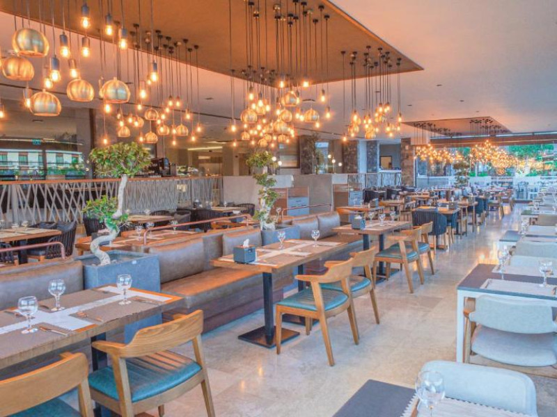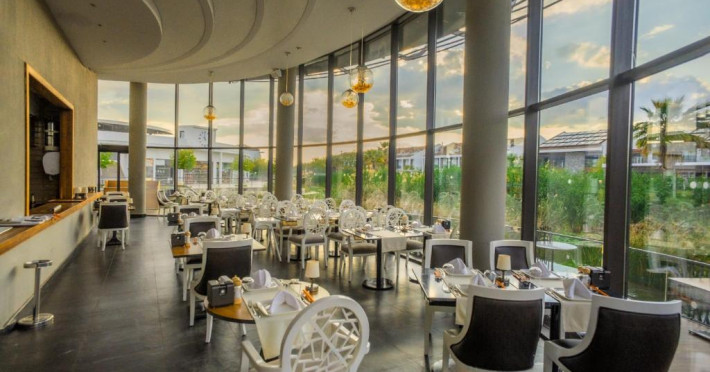 Restaurantul principal servește micul dejun tip bufet, pranzul si cina. De asemenea, complexul are 2 restaurante si un snack bar, care servesc o varietate de preparate delicioase. In plus, există o patiserie deschisă nonstop. La barul de la piscină sunt disponibile nonstop inghețată, gustări și aperitive, in cadrul regimului all inclusive.
