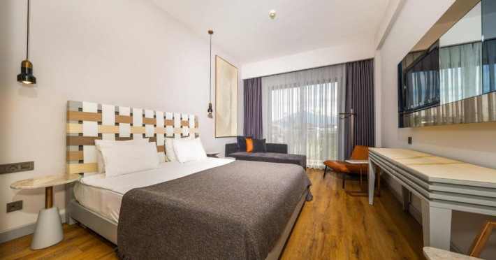 Jiva Beach Resort se află in orasul Fethiye si oferă servicii all inclusive. Situată intr-o zonă de 35.000 mp, proprietatea are un lac natural alături de 5 piscine, oferind activități, facilități de relaxare și tobogane. Numeroasele activități de agrement includ biliard, darts și tenis de masă. Oaspetii au la dispozitie WiFi gratuit si o recepție cu program nonstop.