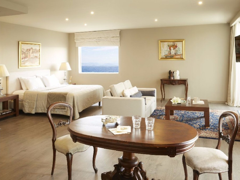 Hotel Aquis Mon Repos Palace este situat pe celebra Promenada Corfu, la 20 m de plaja, cu vedere panoramica la vechiul fort venetian al orasului Corfu.