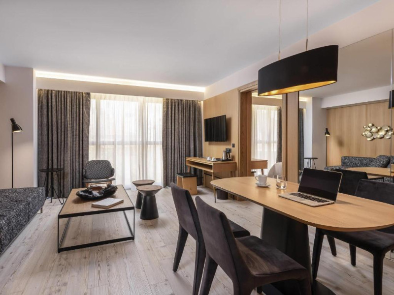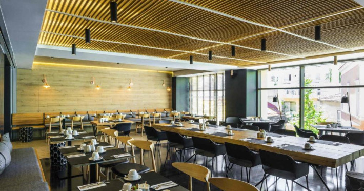 In timpul zilei, restaurantul oferă o gamă variată de opțiuni à la carte pentru pranz și cină, intr-o zonă spațioasă, cu multă lumină naturală. In ambianța unică a barului, oaspeții se pot relaxa cu băuturi calde sau reci, vinuri fine, băuturi lungi, whisky, băuturi spirtoase și cocktailuri de semnătură.