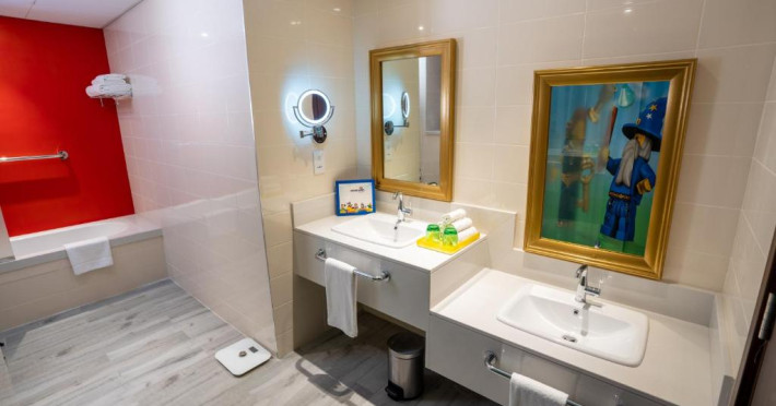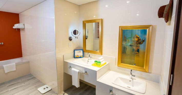 Camerele de la acest hotel sunt echipate cu televizor cu ecran plat cu canale prin satelit și cutie de valori. Baia proprie oferă articole de toaletă gratuite. La LEGOLAND Hotel Dubai, fiecare cameră este dotată cu lenjerie de pat și prosoape.