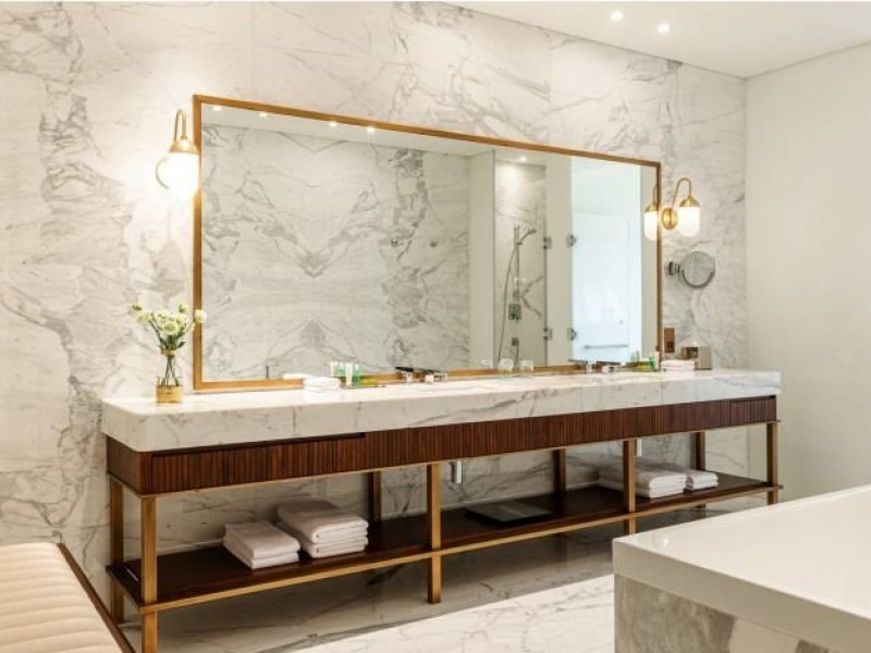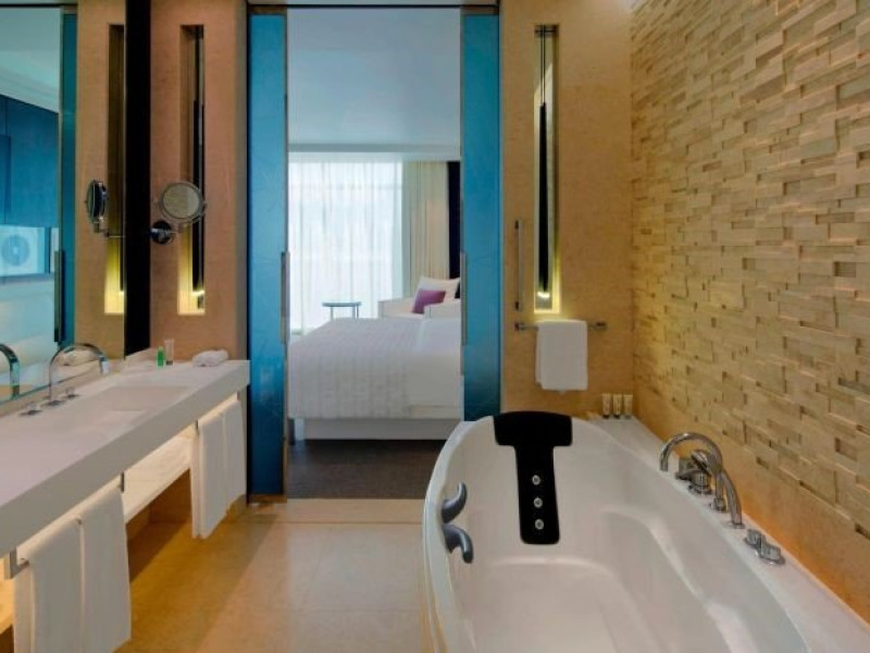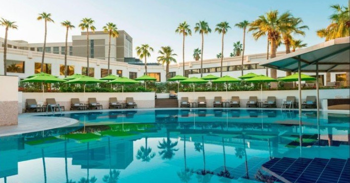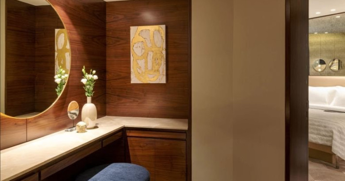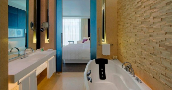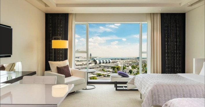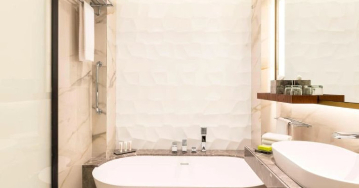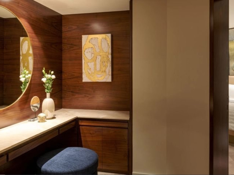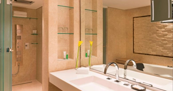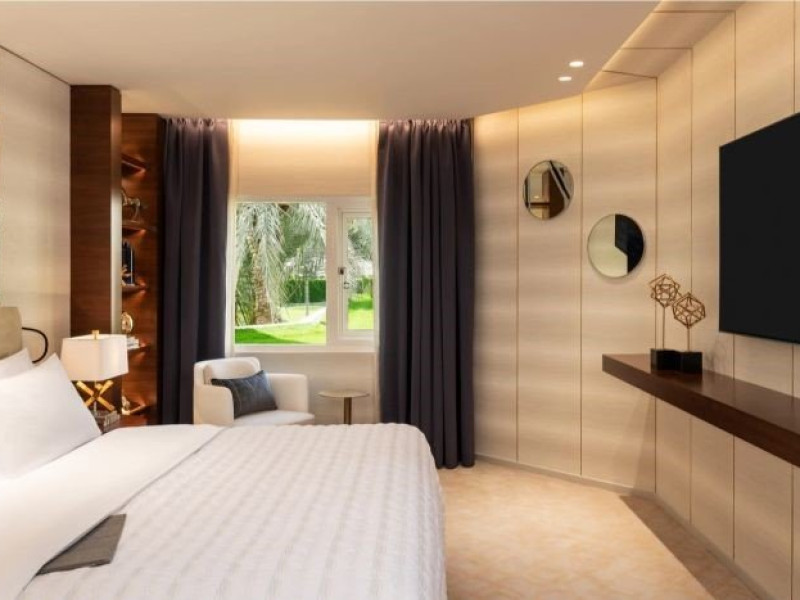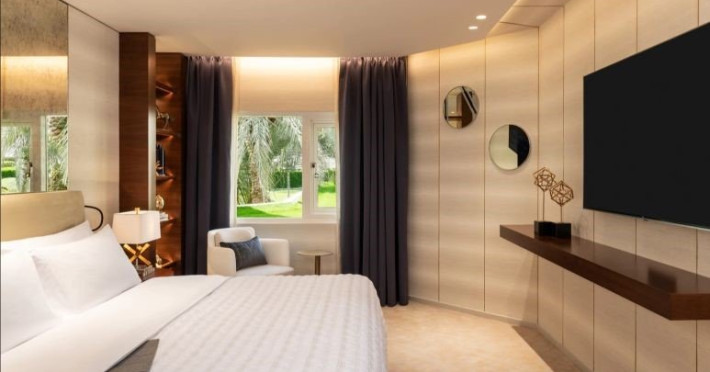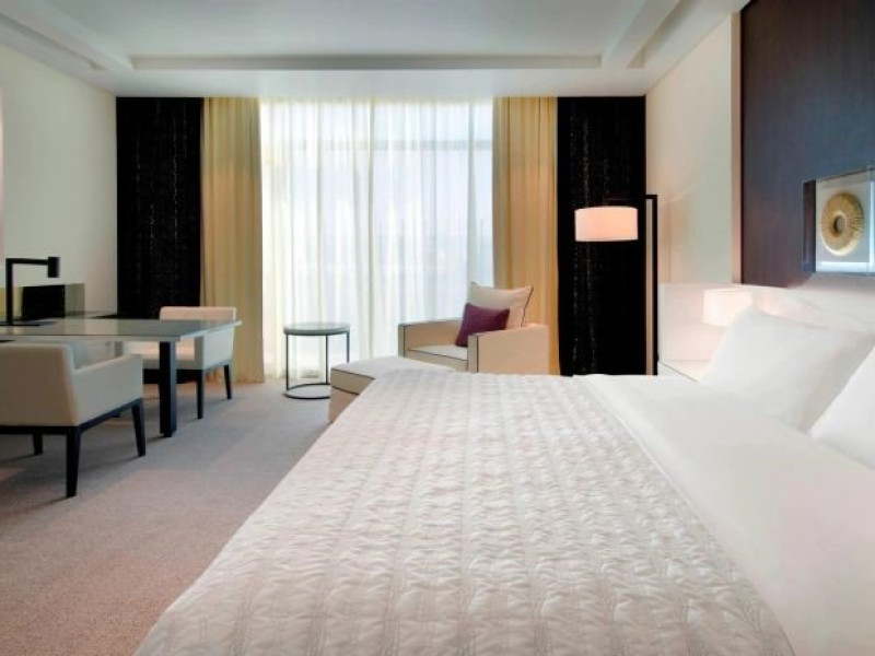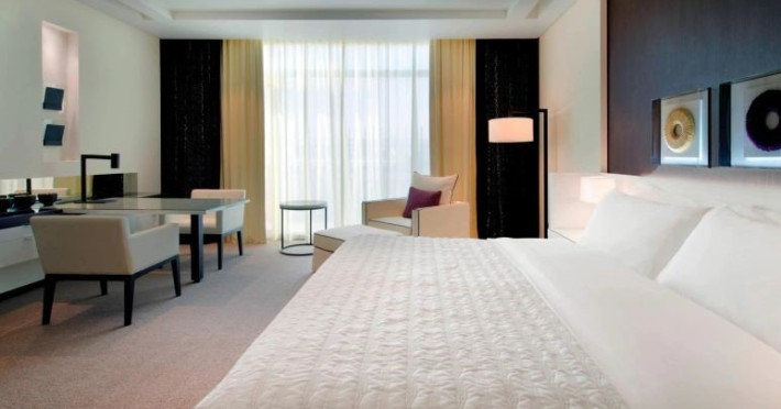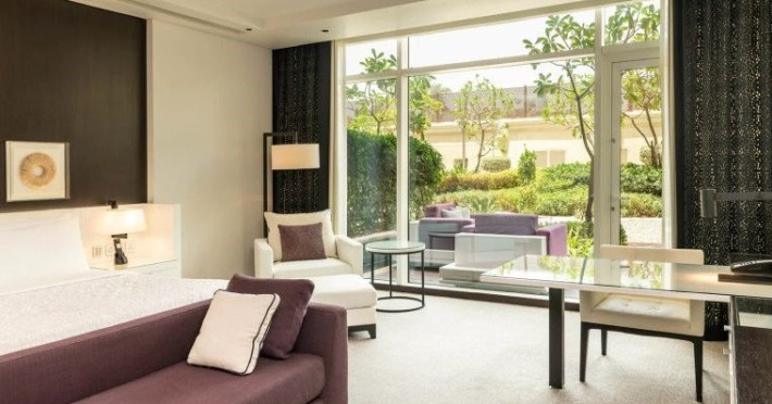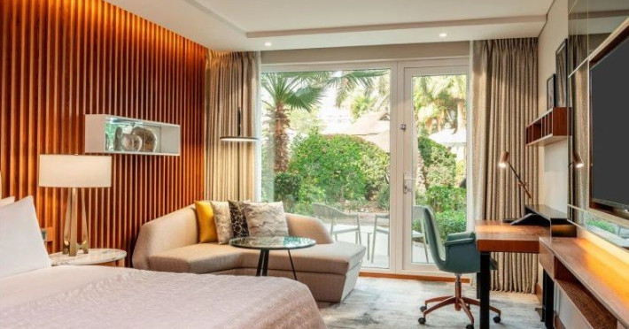 SUPERIOR ROOM - cu vedere la piscina. Camera are pat Queen- size, zona de relaxare/ birou, baie complet echipata si terasa. Turistii au acces la servicii precum: SPA, fitness, se primesc fructe pe timpul zilei si exista acces la un hub multimedia. Suprafata: 32 mp.