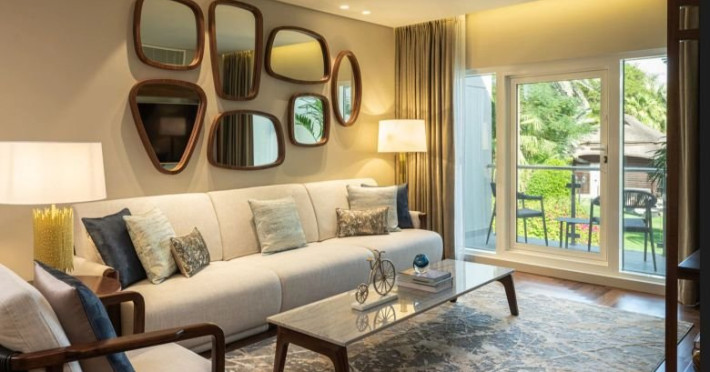 DELUXE SUITE -   cu vedere la gradina. Apartamentul are dormitor cu pat King-size, living, dressing, baie complet echipata si terasa. La cerere: patut pentru copii. Turistii au acces la servicii Club Lounge. Suprafata: 76 mp.