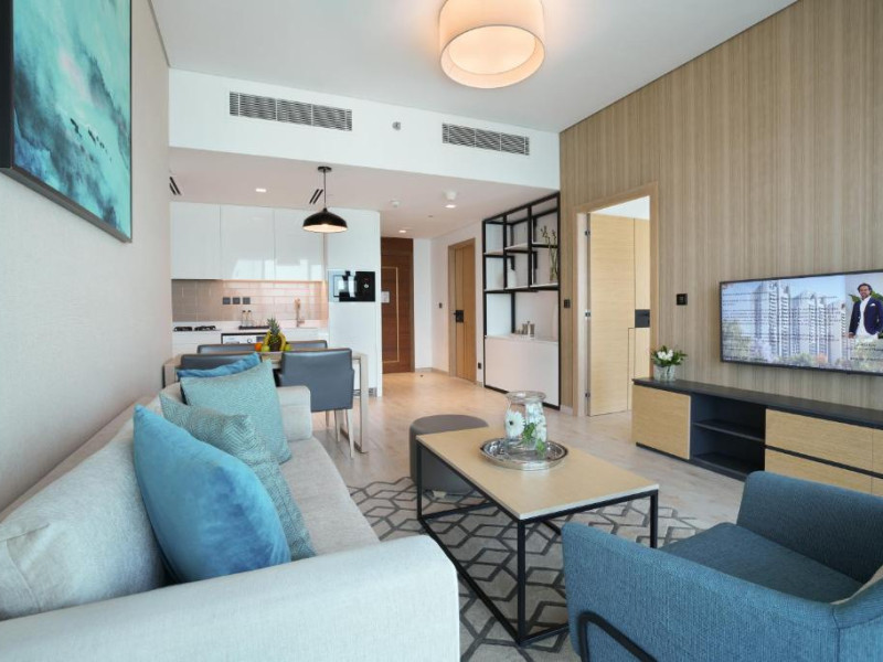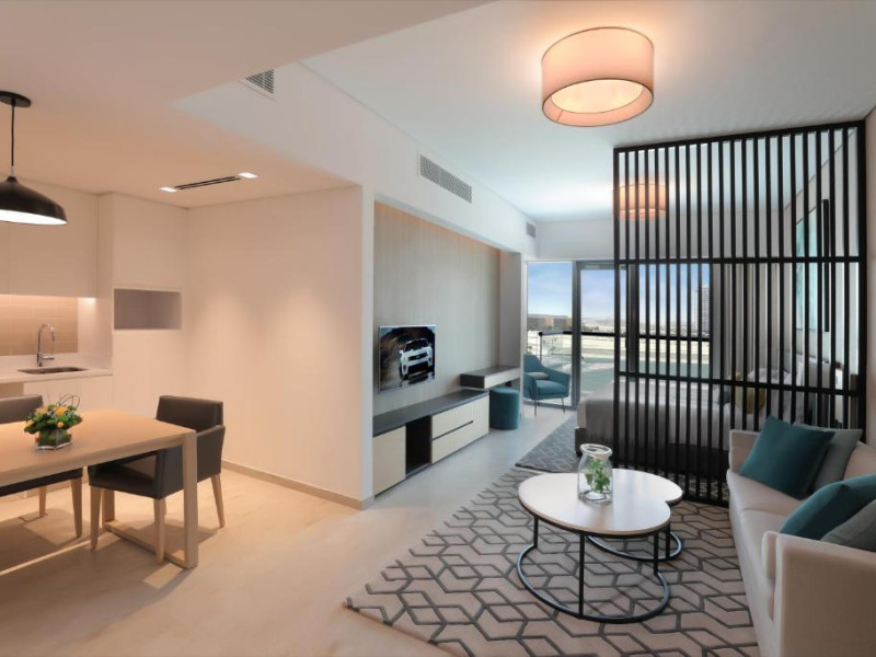 Unitățile de la hotelul de apartamente sunt dotate cu aer condiționat și au baie privată cu halate de baie și TV cu ecran plat. Unele camere includ o zonă de relaxare. Toate unitățile vor oferi oaspeților un birou și un fierbător de apă. Există, de asemenea, o cafenea și un magazin universal.