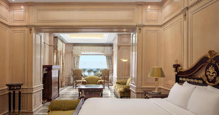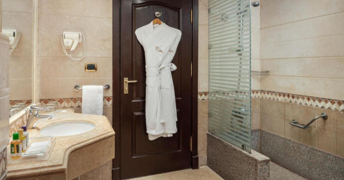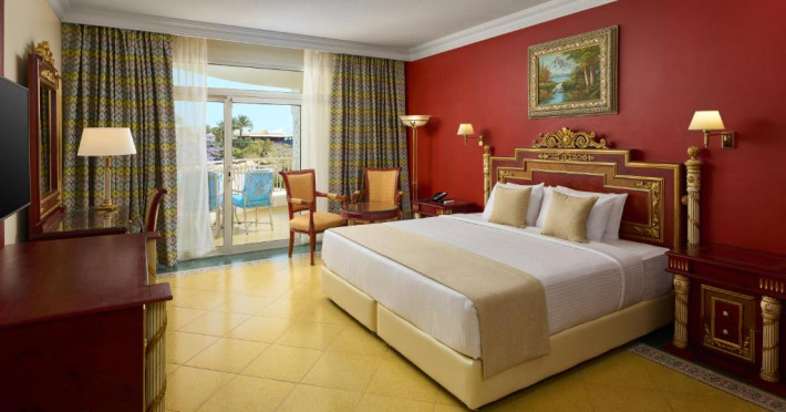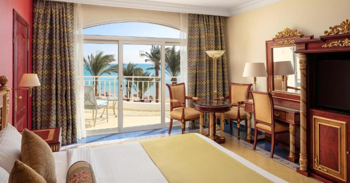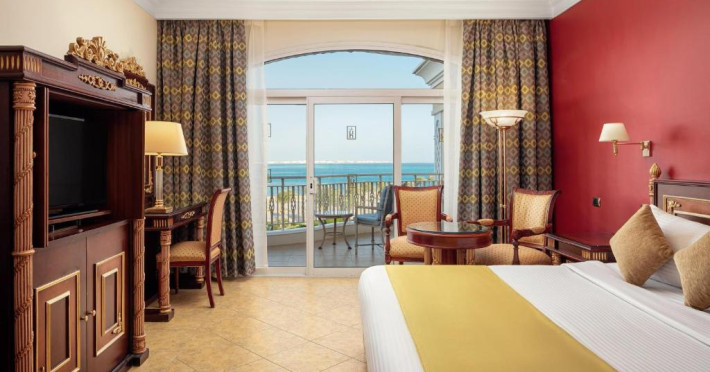 Camerele de la Palm Royale Soma Bay sunt spațioase și au aer condiționat și vedere la Marea Roșie, la grădini sau la zone cu piscine. Acestea includ TV LCD cu canale prin satelit, birou și o baie modernă.