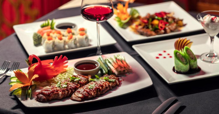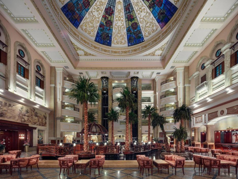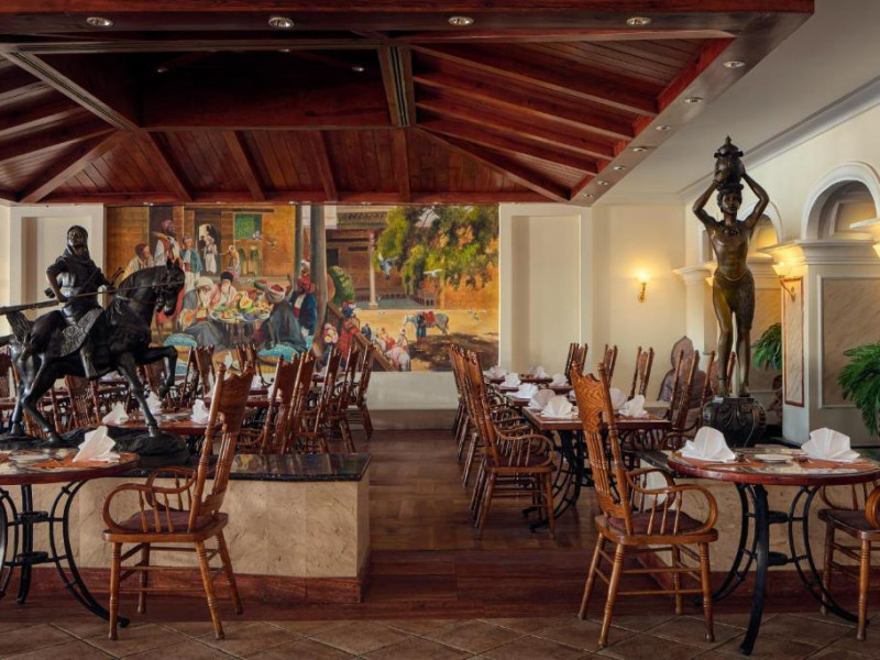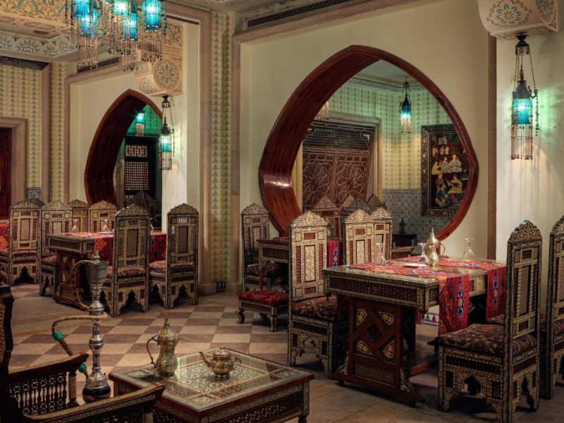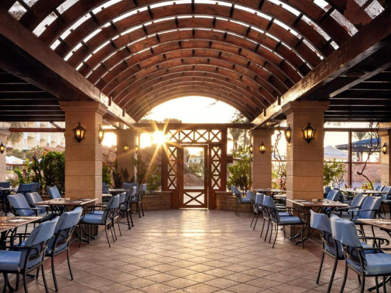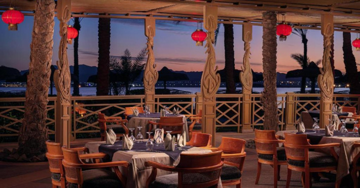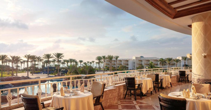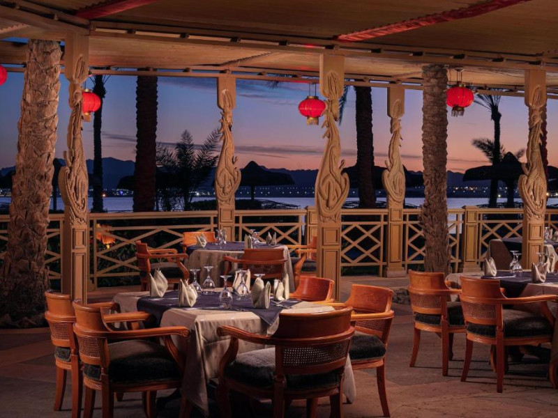 Hotelul are restaurante cu specific asiatic, greceșc italian si libanez, care oferă meniuri à la carte delicioase pentru un număr limitat de vizite, in funcție de durata sejurului. De asemenea, oaspeții pot savura mancăruri din bucătăria egipteană intr-un cadru elegant, cu vitralii și muzică orientală.