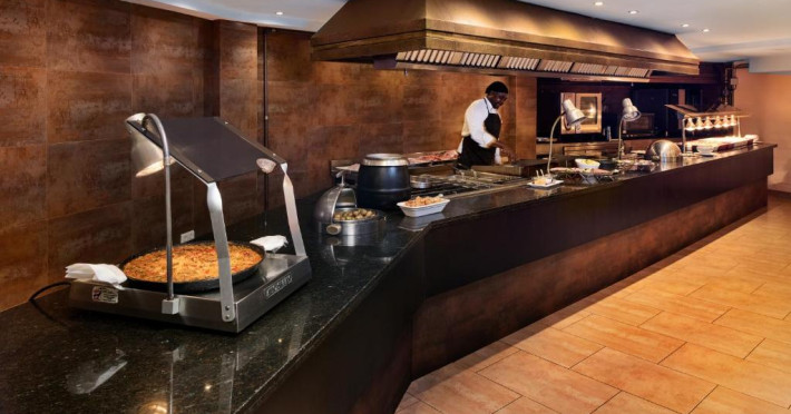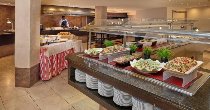 Restaurantul tip bufet al hotelului servește mancăruri locale și internaționale. Există, de asemenea, un lounge bar cu terasă. Seara are loc divertisment live.