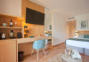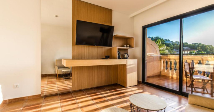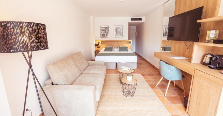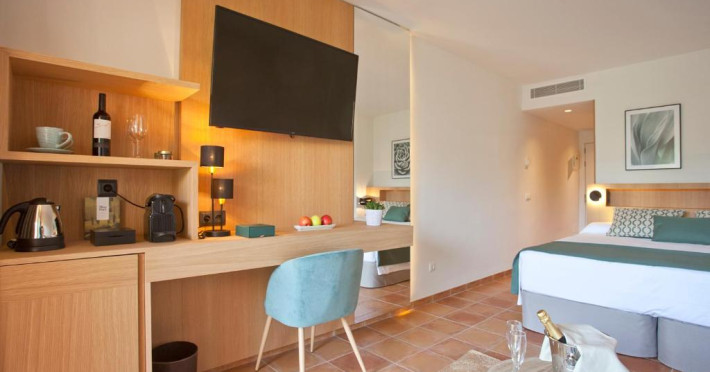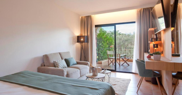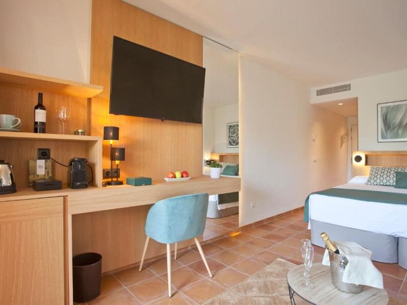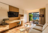 Amenajate cu o zonă de relaxare si un balcon cu vedere la grădină, camerele sunt dotate cu aer conditionat, TV prin satelit, seif si minibar. Există o baie privată cu halat de baie, papuci, uscător de păr si articole de toaletă gratuite.