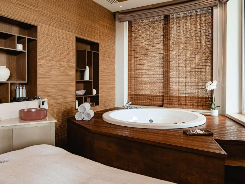 Centrul spa se intinde pe o suprafată de peste 1000 m² si centrul de agrement al complexului oferă vedere uimitoare la mare de la ferestrele sale mari cu vedere la golf.